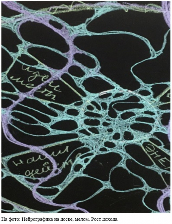 Организаторы: 1 специалист по социальной работе ОМО Участники: члены клуба «60 лет – не возраст!» - 8 участников, 1 специалист. Описание: После введения в тему, участники, в коллективном обсуждении, определили: как и где можно изыскать средства, чтобы расширить доход. Написали 20 слов-ассоциаций по интересующей теме. Фигурой «малый круг» определили, в центре листа, «круг текущего дохода». Четырьмя треугольниками, от периферии к центру, прописали: идеи, решения, действия и энергию. Спиралью расширили круг имеющегося дохода до желаемого. От центральной фигуры к периферии провели множество нейро-линий. Скруглили «острые углы». Выделили главную фигуру, а именно – «большой круг» желаемого дохода, как самый важный. Провели две «жирные» линии поля – поддержку темы из пространства. Приступили к раскрашиванию, используя базовые знания о нанесении цвета. Результат: Участники клуба, воспользовавшись техникой нейрографики, очертили для себя пути решения финансовых проблем. Рисующие так же отметили парадокс: уходить полностью в решение материального вопроса, в силу возрастных приоритетов, не хотелось бы, но и - чтобы денег всегда было в достатке. Участники оценили положительное воздействие такой проработки проблемы, остались довольны происходящим.