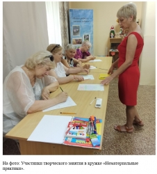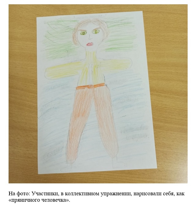 Дата проведения: 25 июня 2024 года Наименование мероприятия: занятие в кружке «Нематериальные практики», знакомство с психологической техникой Станислава Лосева «Ластик». Категория: просветительское, духовное, познавательное досуговое, социокультурное просвещение; Целевое назначение: 1. Удовлетворение культурных и социальных потребностей получателей услуг. 2. Реализация программ «Активное долголетие» и «Национальный Проект Демография». Организаторы: методист по социальной работе ОМО; Участники: всего 4 человека получателей услуг; Описание: Состоялся просмотр фильма «Ластик – инструмент, который поможет исправить отношения со сложными людьми и остаться человеком» (с участием основоположника метода Станислава Лосева), где зрителей познакомили с методом решения проблемных ситуаций, техникой создания позитивных изменений в собственной жизни. Участники, в коллективном упражнении, нарисовали себя, как «пряничного человечка», отметили на нём проблемы своего здоровья. Вокруг нарисовали графически проблемы, возникающие извне, которые могут повлиять негативно на здоровье. Далее «проблемы» и связь с ними стирались ластиком, условно очищая здоровье. «Пряничный человечек» изнутри и снаружи раскрашивался в светлые, радужные цвета, как бы символизируя улучшение здоровья и полное (в идеале) исцеление. Это позволило увидеть варианты решения проблемы, получить стимул к действиям, которые приносят результат. Результат: Участники занятия, посредством участия в технике «Ластик», попробовали преобразовывать негативные эмоции и установки в положительные, за счёт их проработки. В следствии этого участники заметили, что переходят из тревожного состояния в состояние гармонии. Методист ОМО Н.Ю. Мальцева Мальцева Наталья Юрьевна 8-999-654-33-87